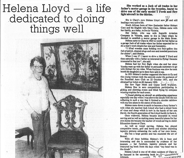 Helena’s story from the book: Clare Cameos compiled by Win Johnson – Published 1986